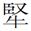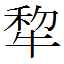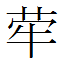 | 牽 | ![]() 【견】끌다; 이끌다(引前); 잡아당기다(挽); 빠르다(速); 거리끼다(拘); 희생(牲); 별 이름(星名牽牛); 뱃줄(舟索); 연하다(連) ![]() 7획 (총11획)