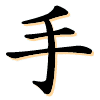 手(손 수)는 위 그림에서 보는 바와 같이 손을 정면에서 바라보고 다섯 손가락 및 손바닥을 선으로 간략히 축약·상형한 글자이다. 手자 맨 위의 삐침( ; 전서체에서는 구부러진 모양)은 가운데 손가락을 구부린 모양으로, 구부릴 수 있는 손의 동적 특성을 표현하였다. 그런데 이에 근거하여 허신은『설문해자』에서 手를 아예 "拳(주먹 권)이다"라고 풀이하였다.
