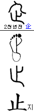 企는 人(사람 인)과 止(발 지)로 이루어져 있는데, 고문에서는 止대신 足(발 족)으로 쓰인 경우도 있다.