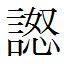 | 諶 | ![]() 【심】믿다(信); 정성(誠); 헤아리다(測) ![]() 9획 (총16획) | |