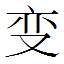 | 變 | ![]() 【변】변하다(化); 움직이다(動); 고치다(更); 재앙(災異); 죽다(死喪); 야단(暴動); 난리(戰乱); 수단(手段) ![]() 16획 (총23획)