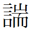 | 論 | ![]() 【론】논의하다(議); 말하다(說); 생각하다(思); 견해; 글 뜻풀다(註繹) 【론】변론하다(辯) 【륜】차례(言有理倫) ![]() 8획 (총15획) ![]()