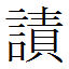 | 讀 | ![]() 【독】글을 읽다(誦書); 풍류 이름(樂名) 【두】구절(文語絶處); [韓] 이두(吏頭) ![]() 15획 (총22획)
