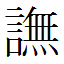 【무】속이다(欺妄); 믿지 못하다(不信) [ 복사용 문자 : 𧩄 ] ![]() 8획 (총15획) | |