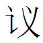 | 議 | ![]() 【의】의논하다(定事之宜); 말하다(言); 꾀하다(謀); 평하다(評); 가리다(擇) ![]() 13획 (총20획)