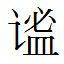 | 諧 | ![]() 【해】고르다(調); 어울리다(耦); 화하다(和); 기롱지거리 하다(笑謔); 글(書名) ![]() 9획 (총16획)