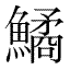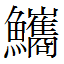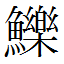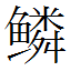 | 鱗 | ![]() 【린】비늘(魚甲); 물고기(魚類總稱) ![]() 12획 (총23획)