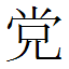 | 黨 | ![]() 【당】무리(朋,輩); 편벽되다(偏); 치우치다; 견주다(比); 자주(頻); 곳(所); 알다(知); 마을(五百家稱); 고향(鄕里); 일가(親戚) ![]() 8획 (총20획)