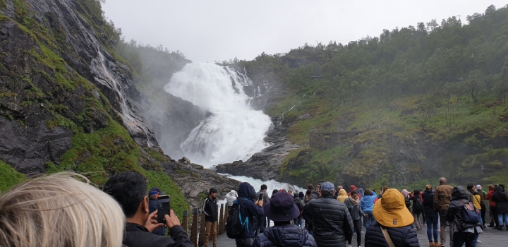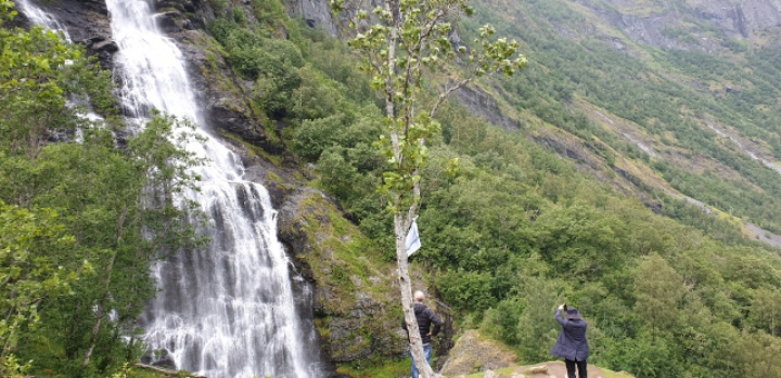 93m 높이의 웅장한 효스포센(Kjosfossen) 폭포가 있는 간이역에서 5분 정차한다.