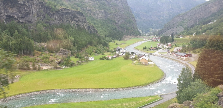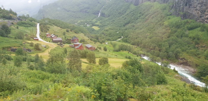 열차가 미르달까지 가는 동안 노르웨이의 산악풍경이 보인다. 깊은 계곡에는 눈 녹은 물이 급하게 흐르고, 눈 덮인 산의 절벽에서는 수백미터 높이의 장엄한 폭포가 떨어진다.