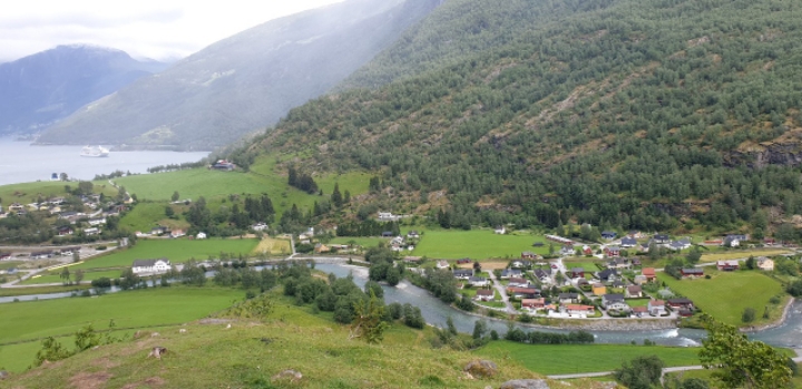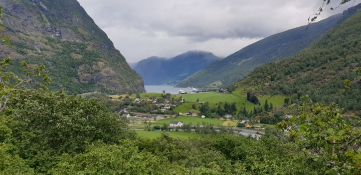 높이 올라갈수록 플롬(Flåm)이 더 보인다.