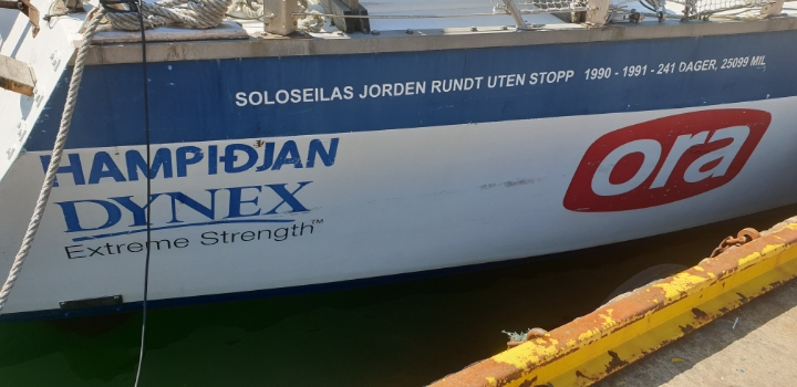 부두에는 1990년~1991년에 무기항 단독 세계일주를 한 요트가 있었다. 예사로 보이지 않는다.