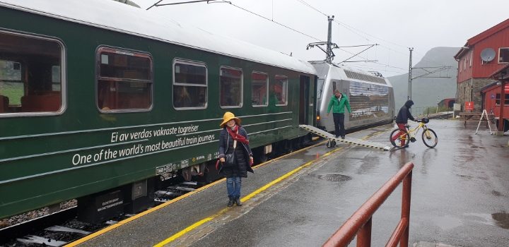 시간이 되자 산악열차 Flåmsbana가 출발한다.
