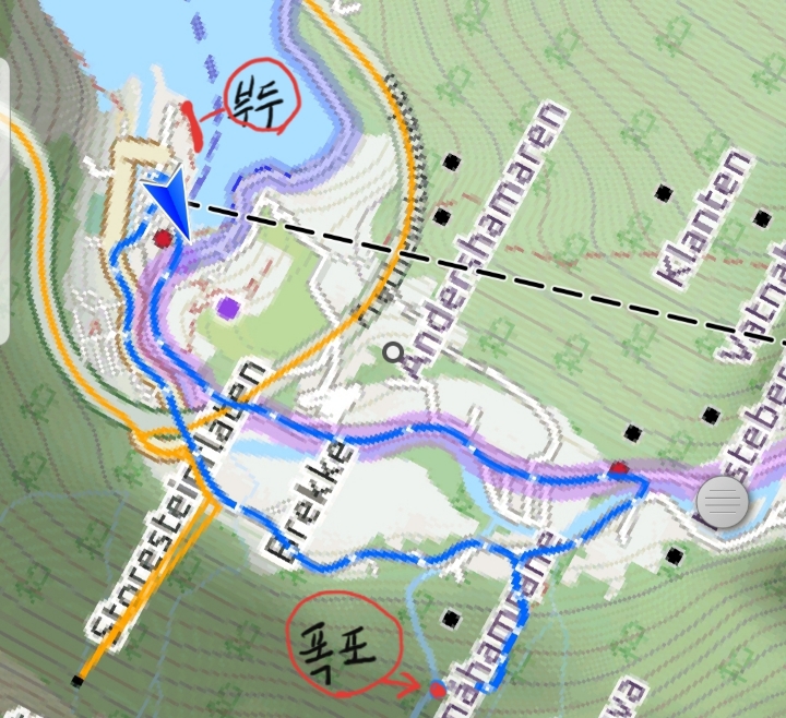 30분 오르막 끝에 관광 가이드에 안내되어 있는 폭포(Brekkefossen)에 닿았다.