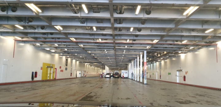 차 싣는 공간이 엄청나게 크다. 이만큼 커도 한 대의 공간도 없이 꽉 채워 출항했다.