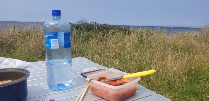 아무도 없는 바닷가에서 파리에서 산 국산 라면 2개를 꺼내든다.