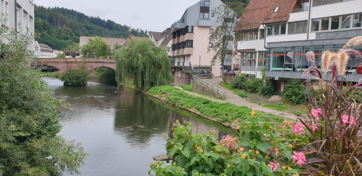 칼브(Calw) 입구의 니콜라우스 다리. 여기에는 헤세의 동상이 있다.