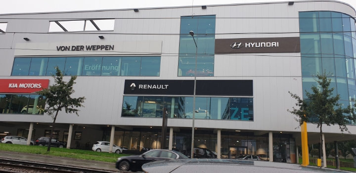 벤츠박물관을 떠나 얼마 지나지 않은 곳에서 기아 현대차 건물이 보인다.