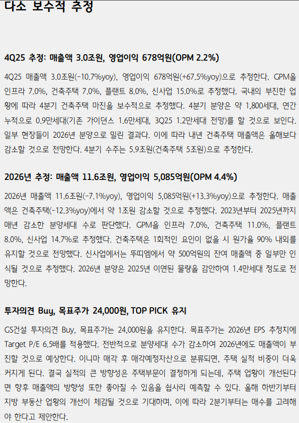 GS건설 - 다소 보수적 추정