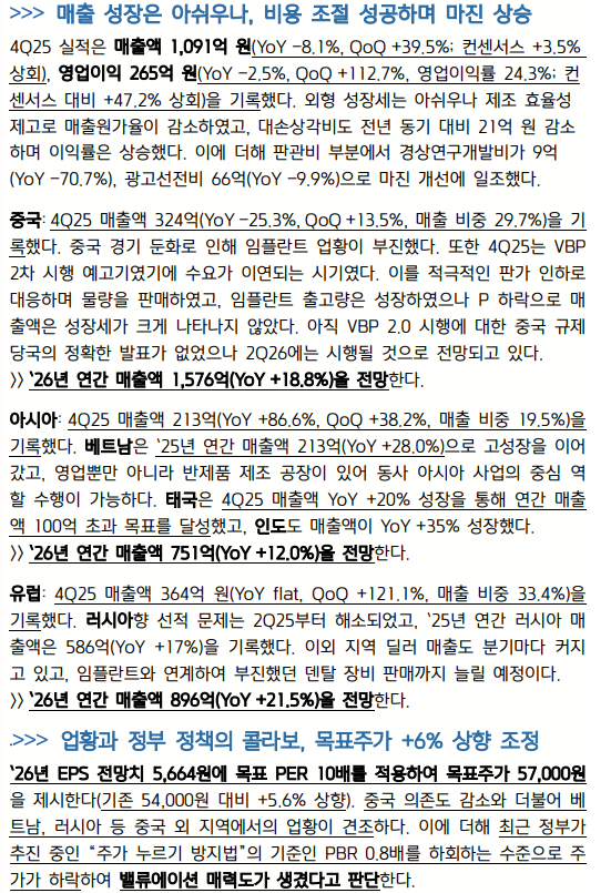 중국 의존도가 줄었고, 베트남을 중심으로 한 아시아, 러시아를 비롯한 유럽에서의 매출 성장세가 이어지고 있어 `26년 실적 성장을 기대해볼 수 있습니다.