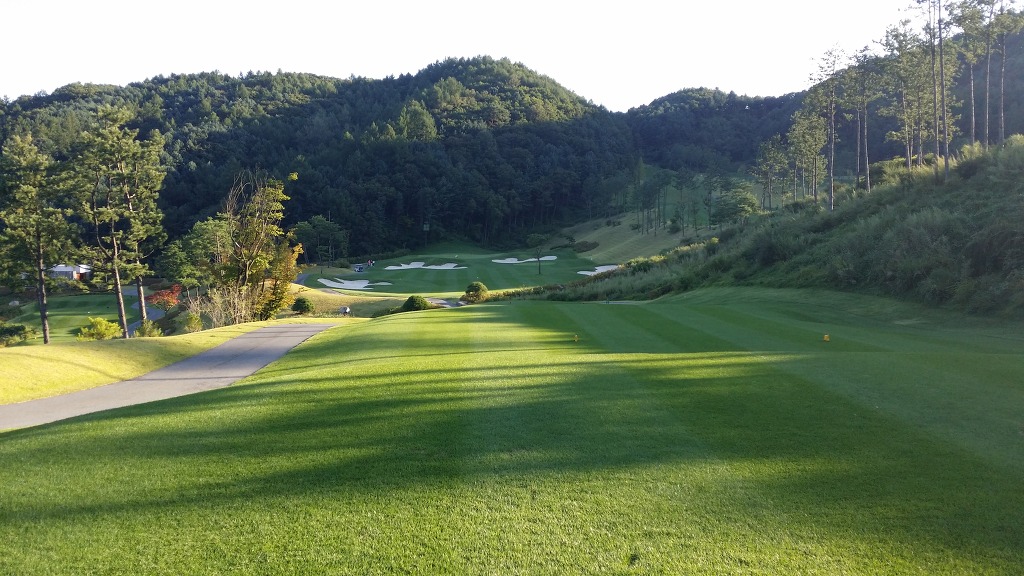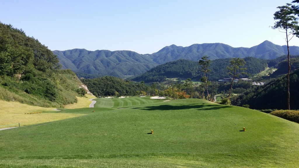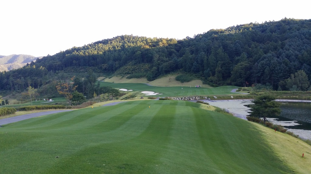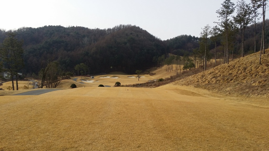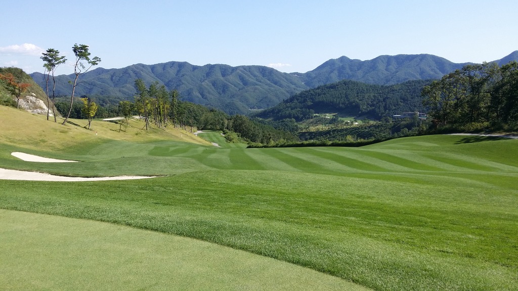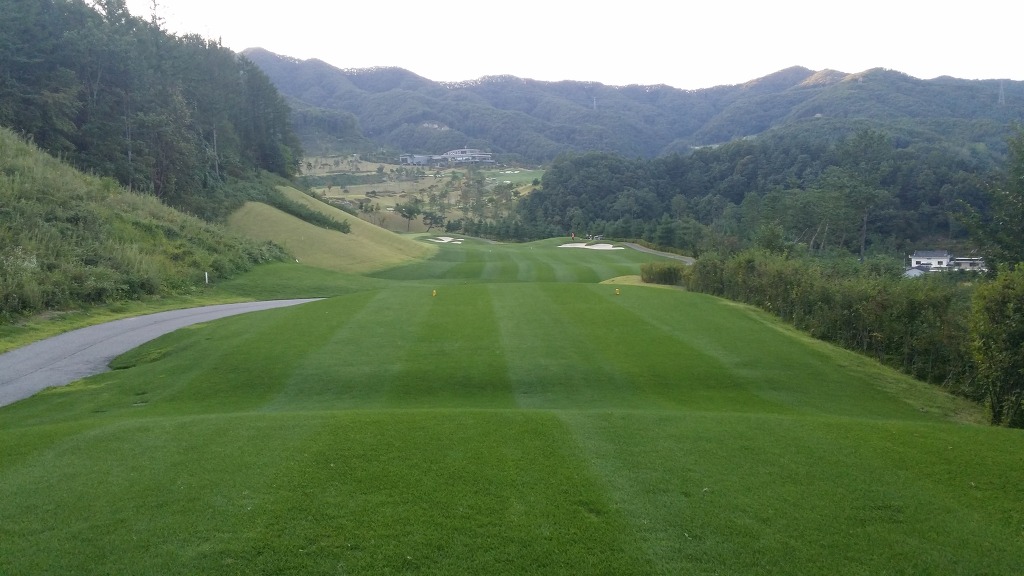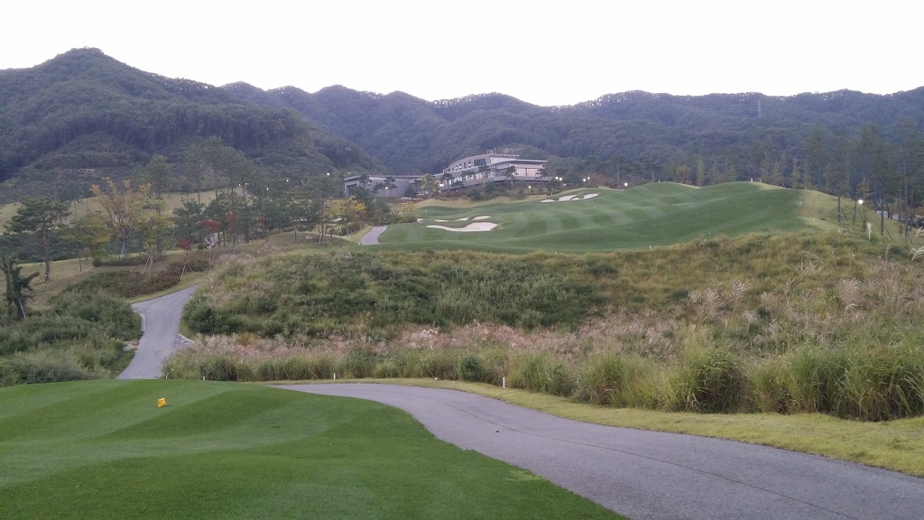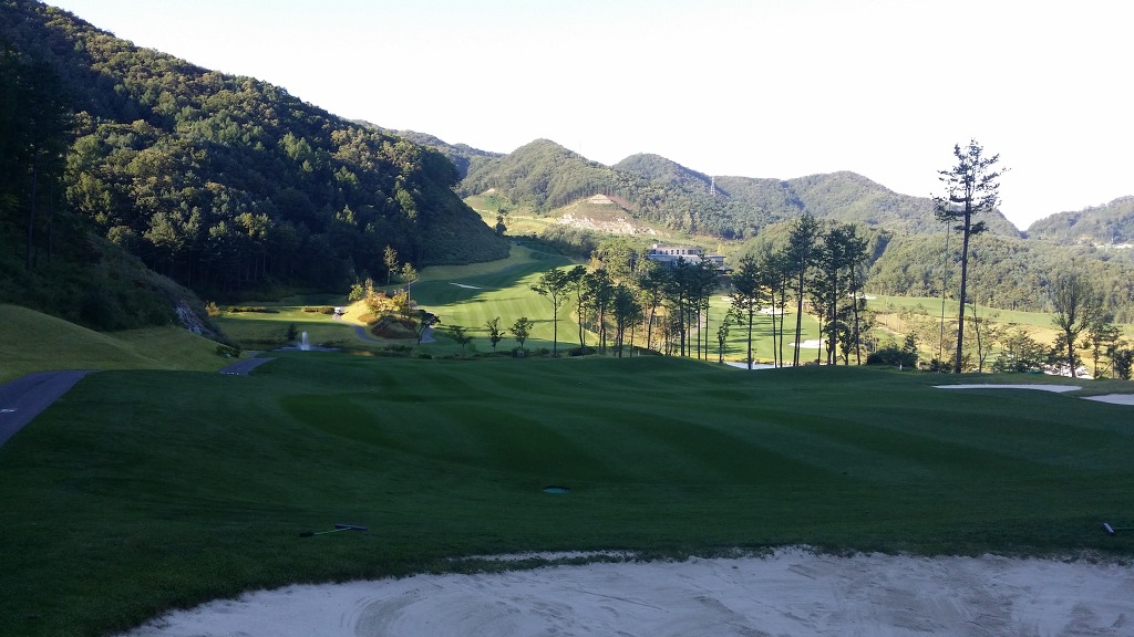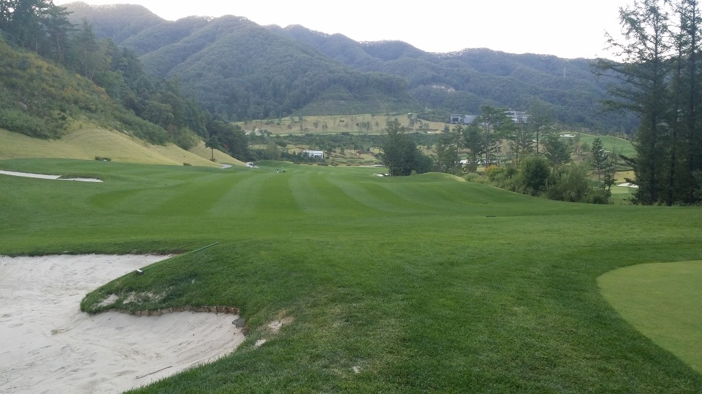 중간에 보이는 벙커옆 그린이 1번홀이고 멀리 언덕위에 그린은 2번그린입니다.