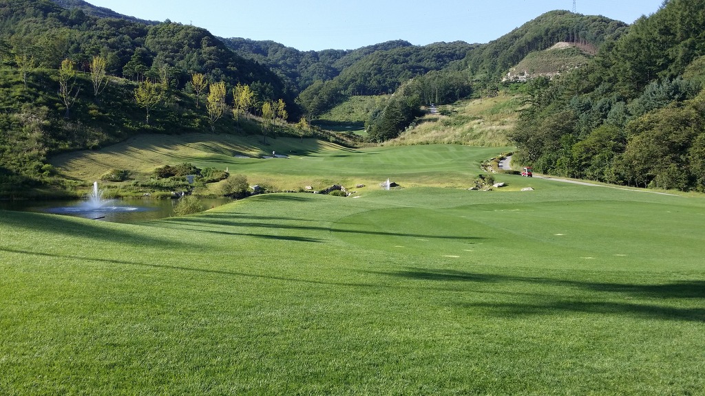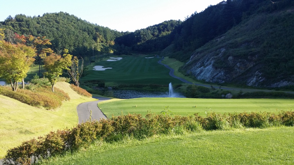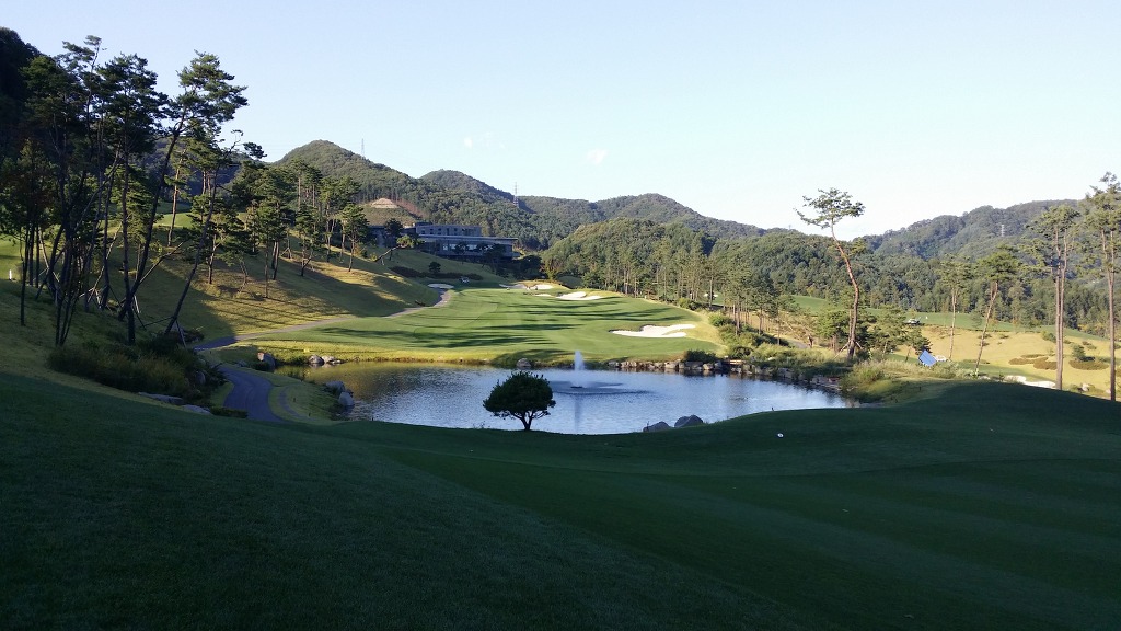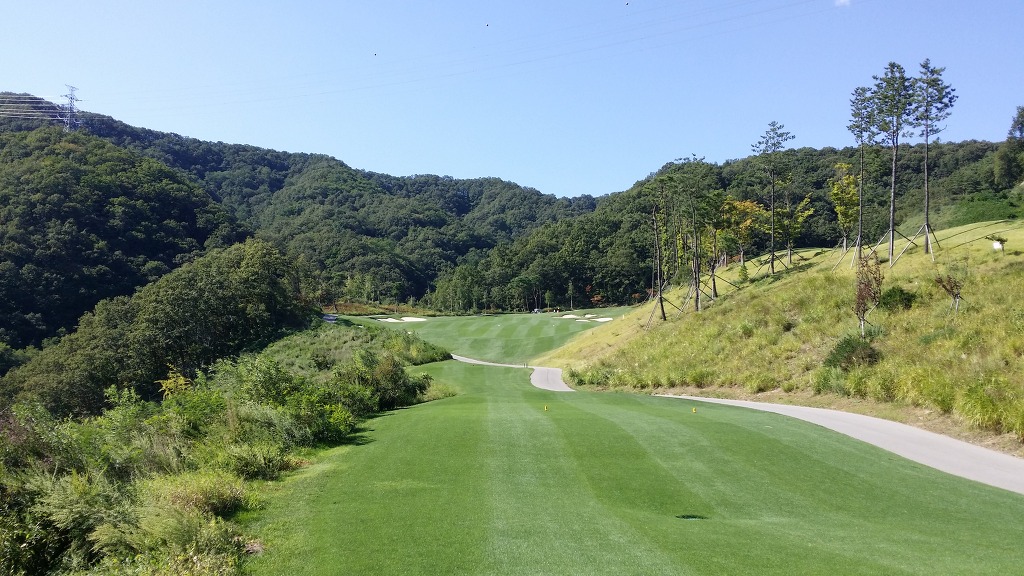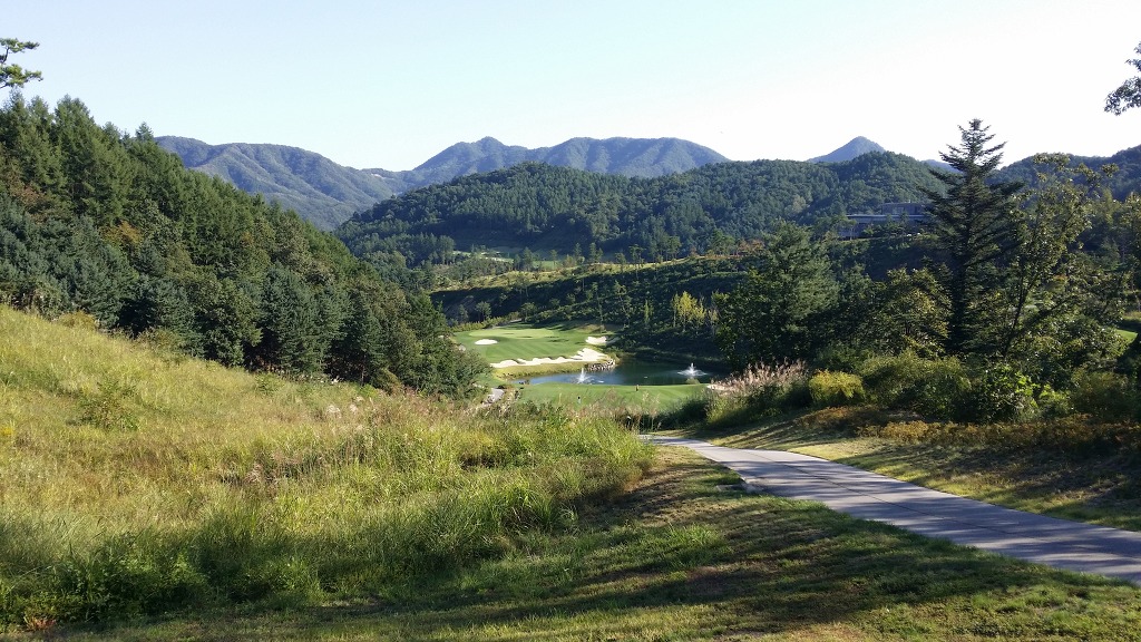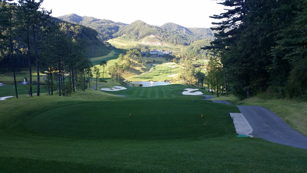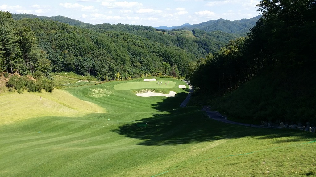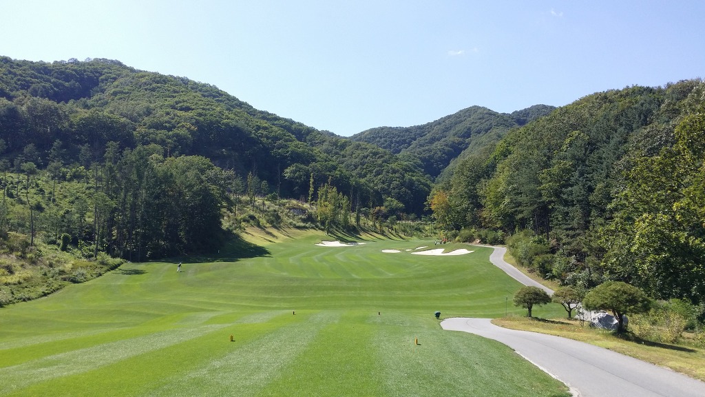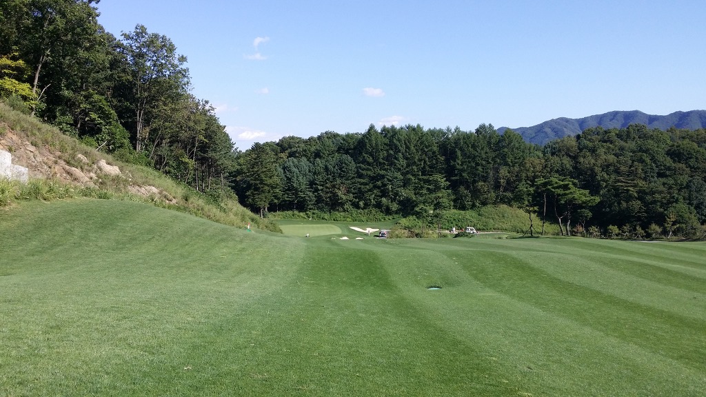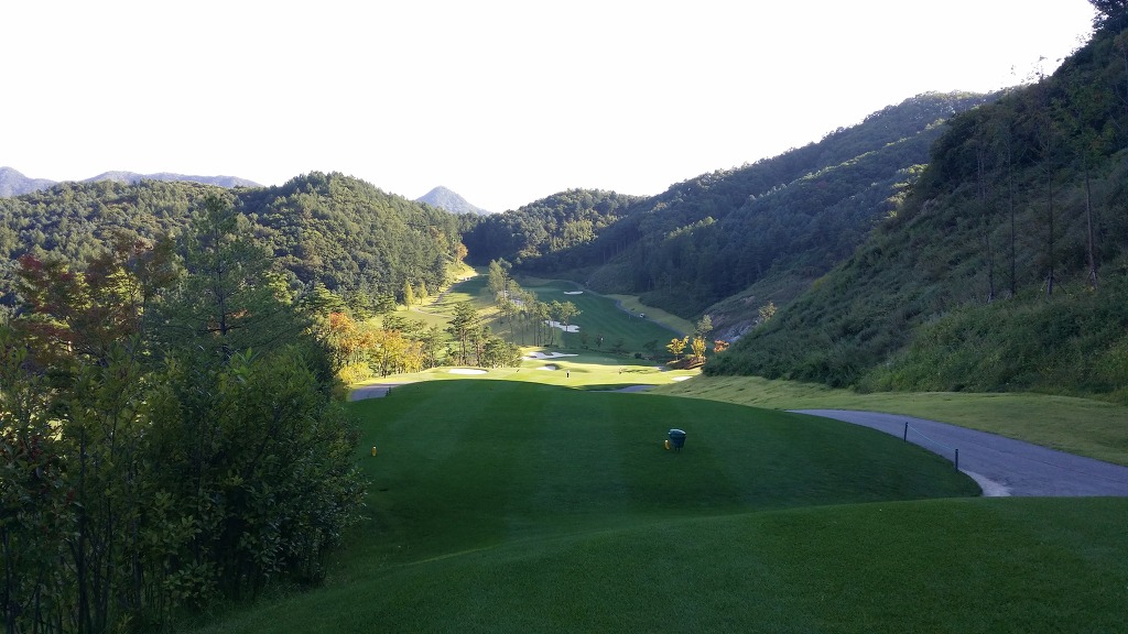 중간에 보이는 벙커옆 그린이 1번홀이고 멀리 언덕위에 그린은 2번그린입니다.