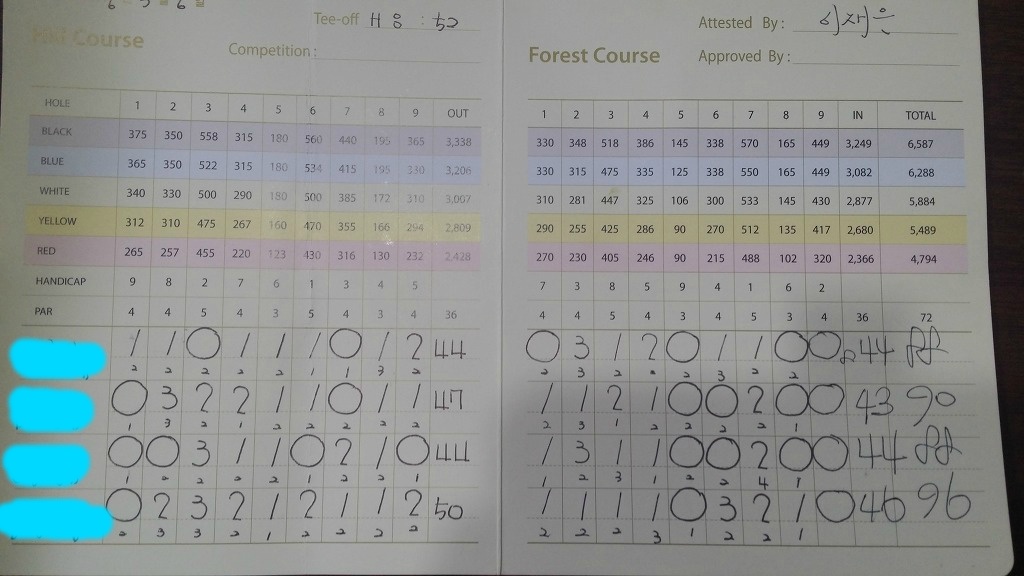그린앞쪽까지 잘왔지만 세컨에 나무에 맞고, 왼쪽으로 팅겨나가고 어프로치에 왔다갔다..더블보기합니다.