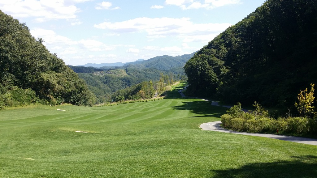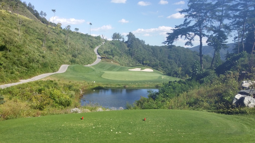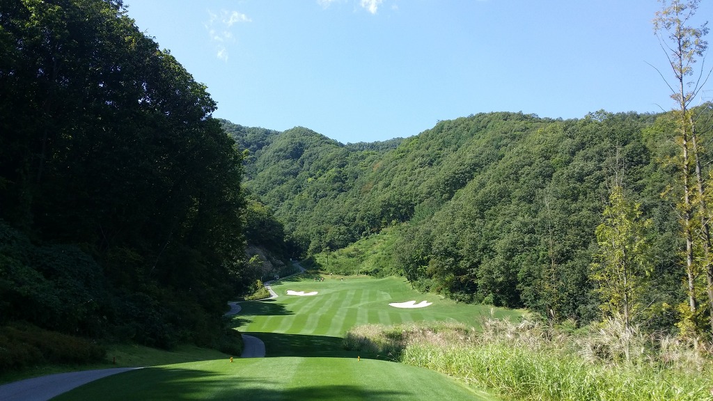 세컨지점이 전혀 보이지 않는 홀로 도로나 내리막을 타게되면 이글도 가능합니다.