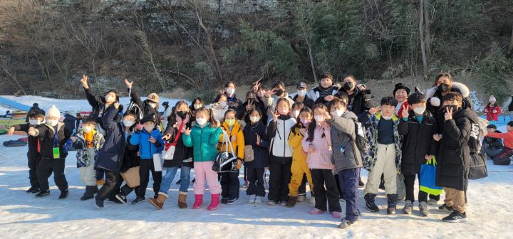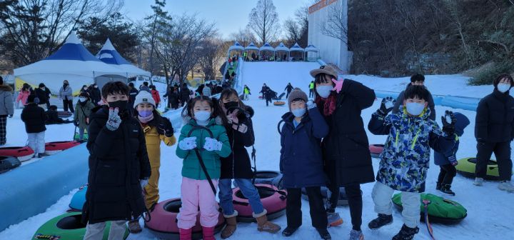 지난주 눈썰매 체험을 했답니다.