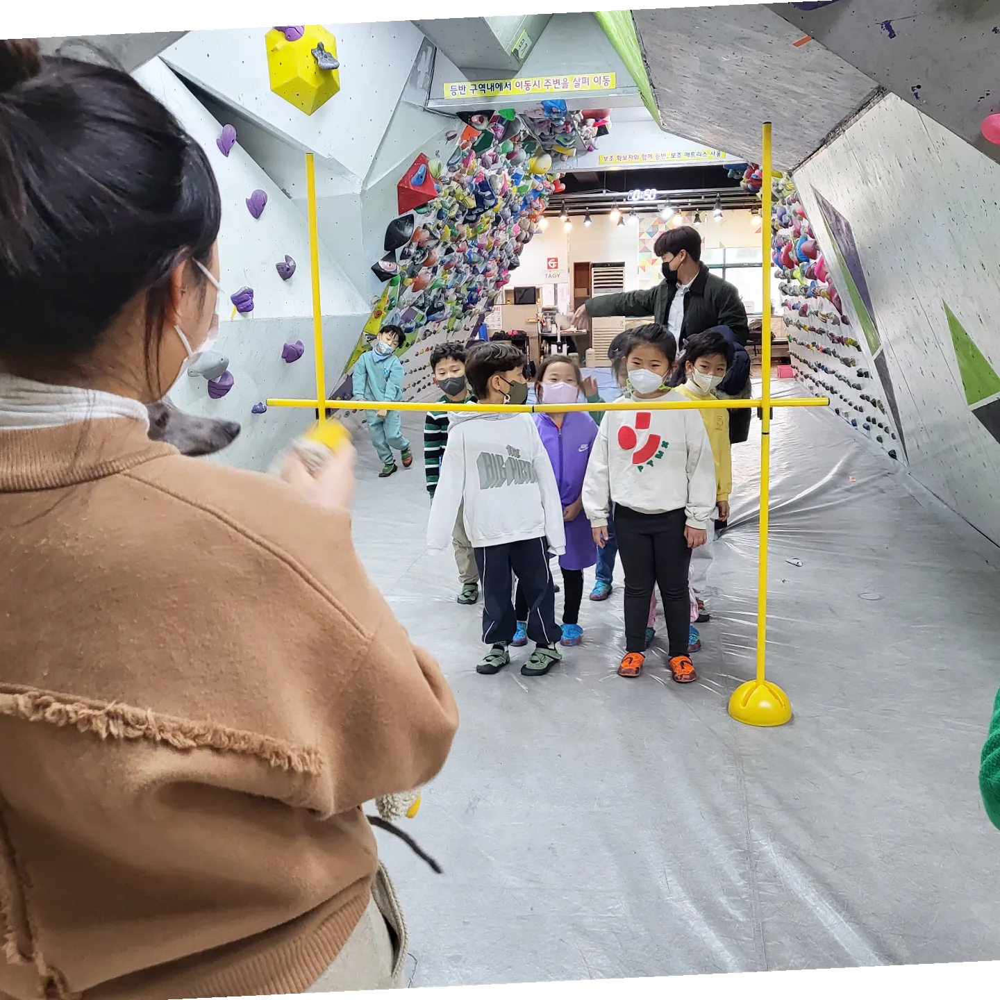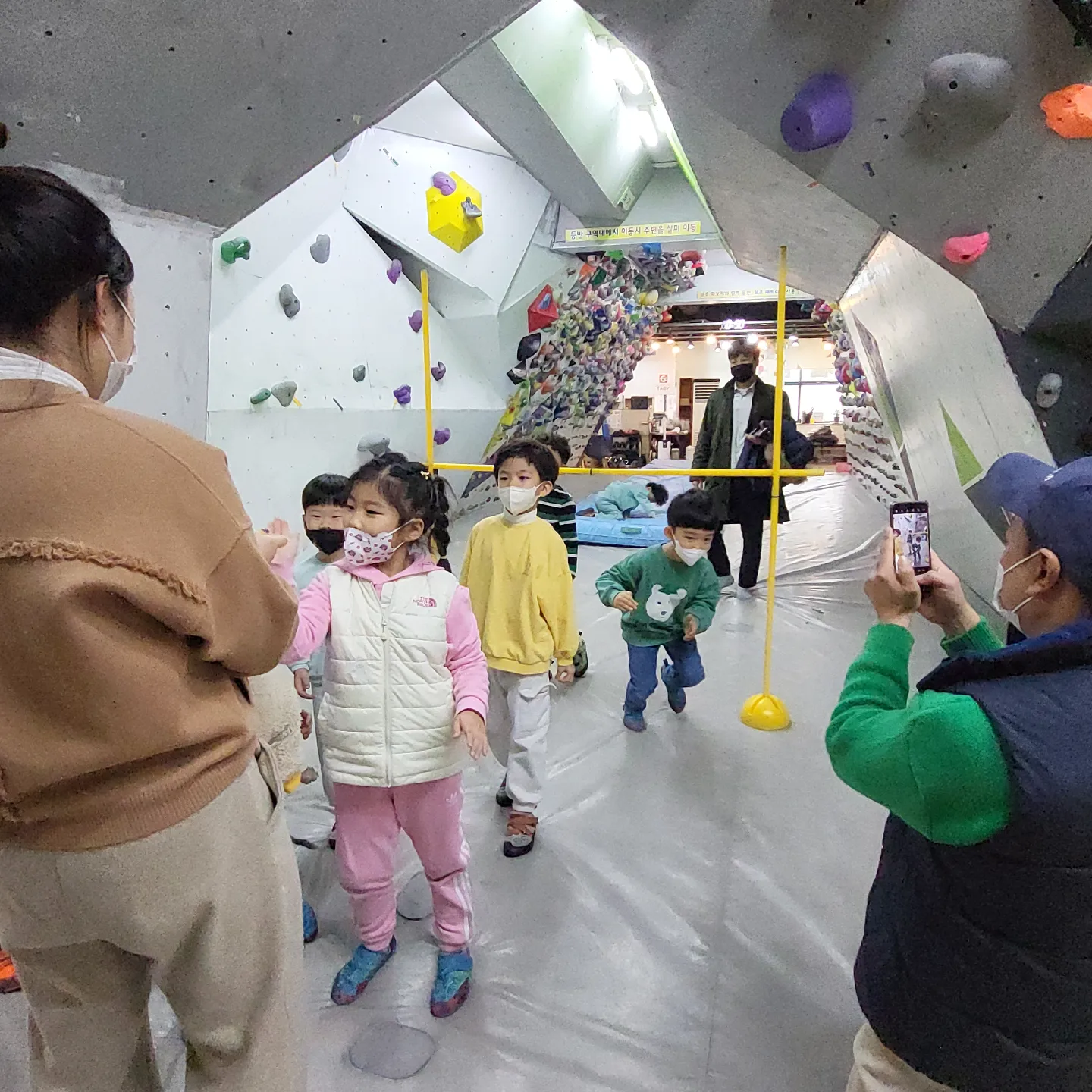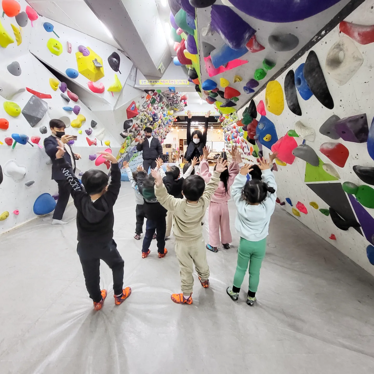 클라이밍이 처음인 아이들에게 좋은 경험이 되도록 최선을 다해 한발 한손