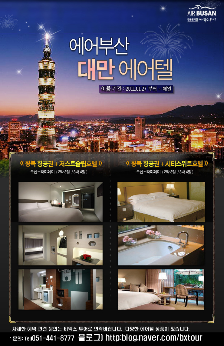에어부산 대만에어텔출시!! 작성자대만완전정복|작성시간10.12.01|조회수492 목록 댓글 0 글자크기 작게가 글자크기 크게가 에어부산 에어텔 출시!! 2011년 1월 27일부터 ~ 매일 가능합니다!! 문의 전화 주시면 다양한 에어텔 상품을 보실 수 있습니다^^ 다음검색 현재 게시글 추가 기능 열기 북마크 공유하기 신고 센터로 신고 댓글 댓글 0 댓글쓰기 답글쓰기 댓글 리스트