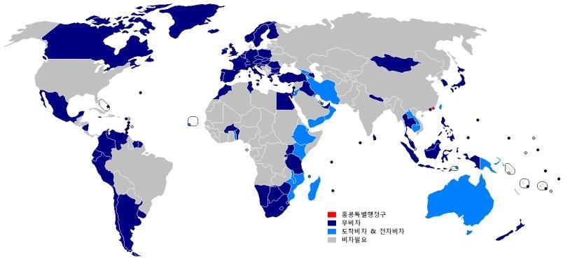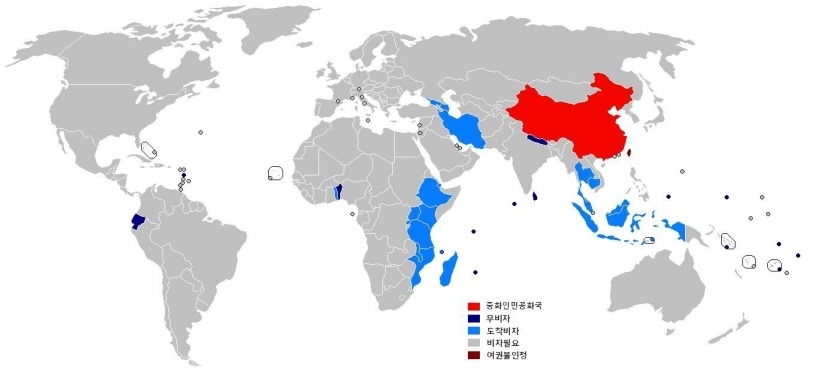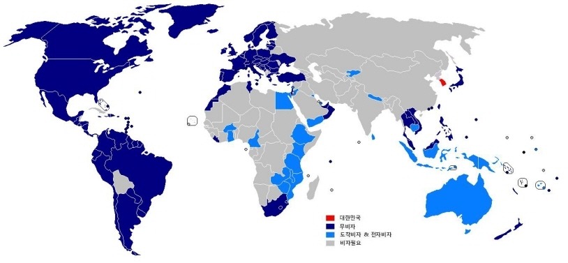 세계 모든 국가에서 대부분 무비자로 갈수 있지만 중동과 구 동유럽권 국가 아프리카는 예외에 있습니다.