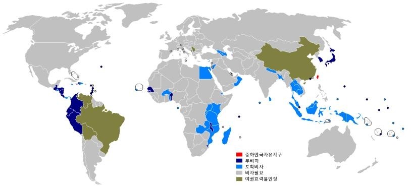 대만인에 경우 아시아에서 무지바로 여행을 갈수 있는 국가가 한국, 일본, 싱가포르(동남아시아) 정도로