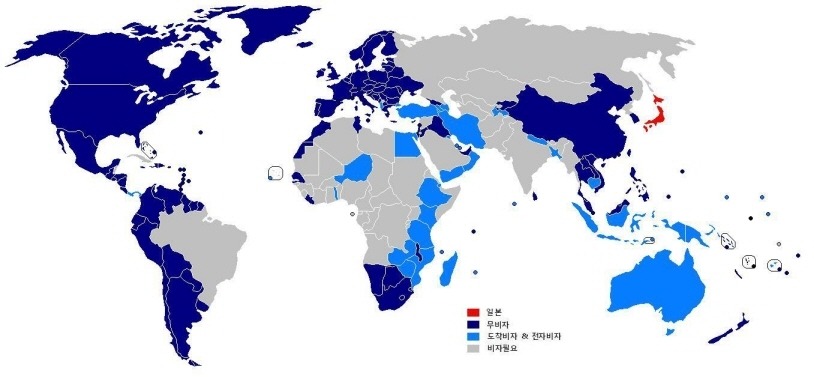 해외여행시 참고! 세계 각국의 무비자 체결현황