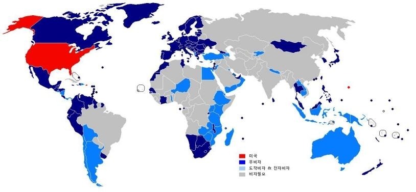 3. 미국 입국시 2008년 부터 무비자로 여행 가능 협정 체결(전자여권 필요함)