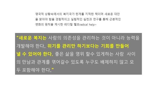 당사자의 역량을 강화한다고 하지만 결국 제한된 관계만 활용하고 강화했을때 제한된 역량까지만 발휘되지 못하는 경우를 종종 뵐수 있기 때문에 좀더 영향력을 강화시킬수 있는 다양한 관계망을 활용하고 접촉점을 넓혀가는게 중요하리라 생각된다.