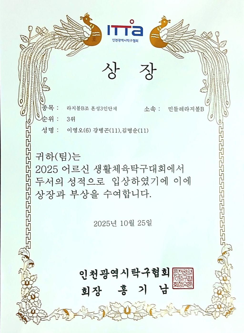 [스크랩] 인천시대회 2025 10 25 작성자이슬|작성시간25.10.26|조회수4 목록 댓글 0 글자크기 작게가 글자크기 크게가 다음검색 스크랩 원문 : 라지볼 카페 좋아좋아 현재 게시글 추가 기능 열기 북마크 공유하기 신고 센터로 신고 댓글 댓글 0 댓글쓰기 답글쓰기 댓글 리스트
