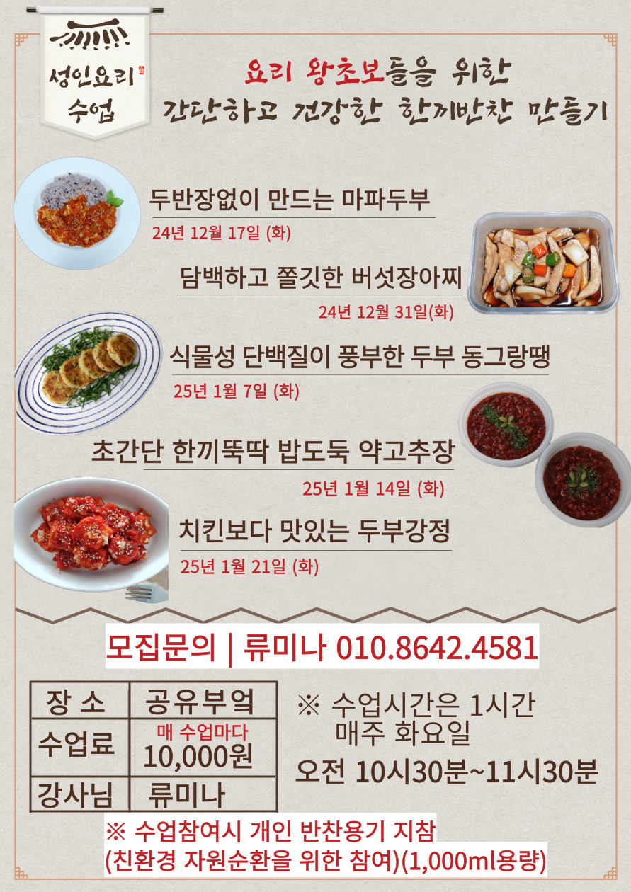 [성인요리수업] 요리 왕초보들을 위한 간단하고 건강한 한끼반찬 만들기