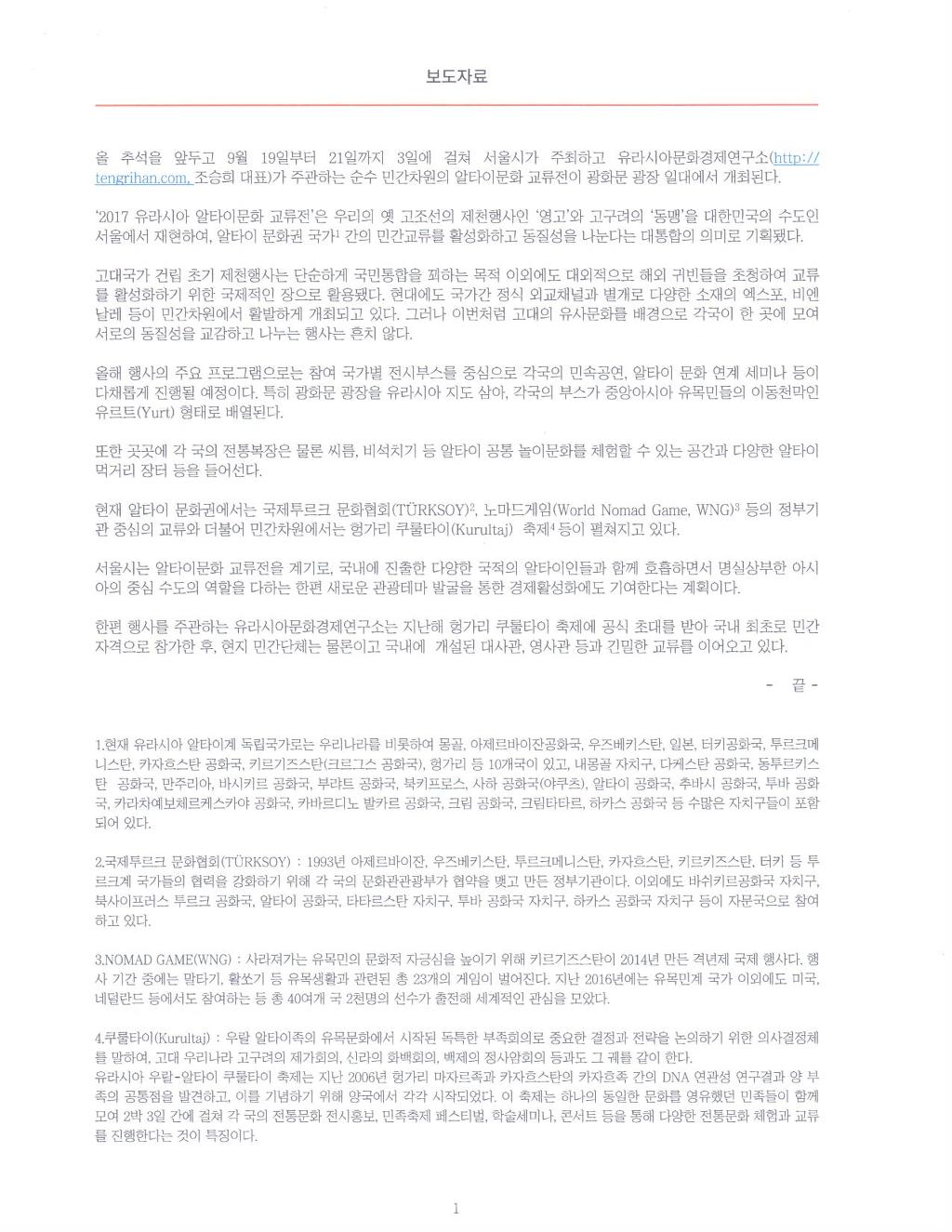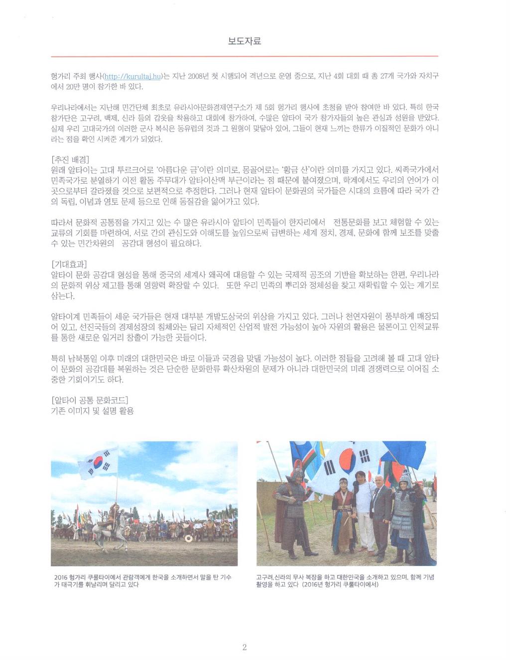 경제, 사회 등 교류를 목적으로 같은 알타이 민족으로 서로 돕고