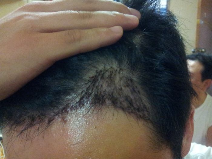 전 이식된머리가 남보다 많이 생착되있어서 새로나는 모발과 같이 잘자라고있습니다 ㅋ