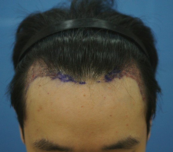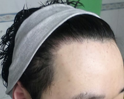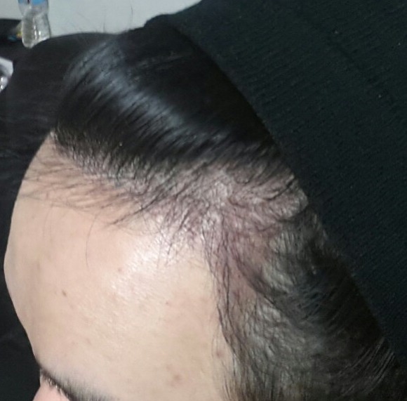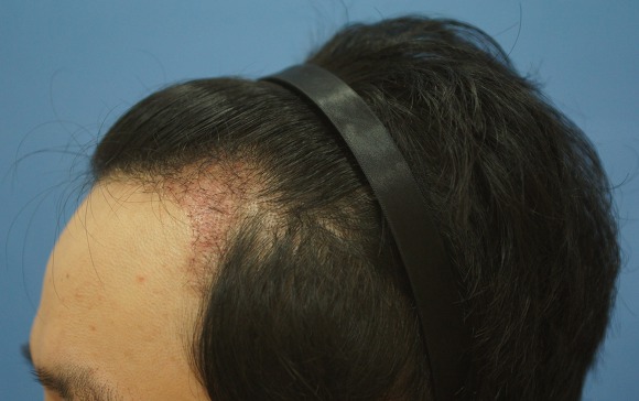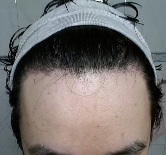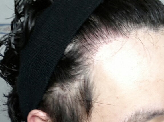 무삭발로 수술을 해서 앞머리를 내리면 그만이었지만 이식부위에 붉은기가 남아있어서