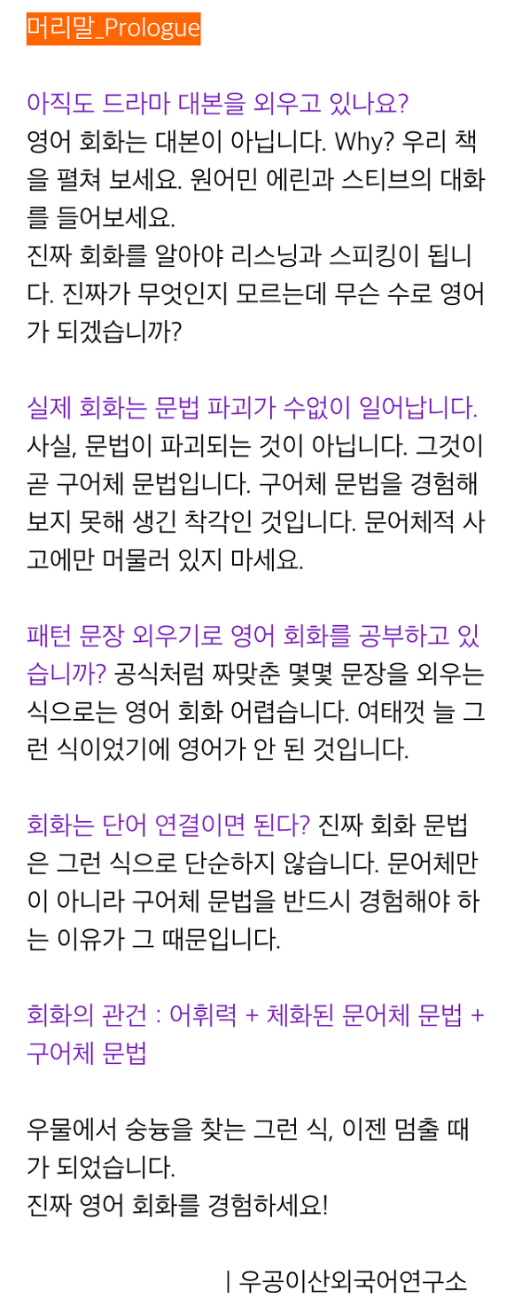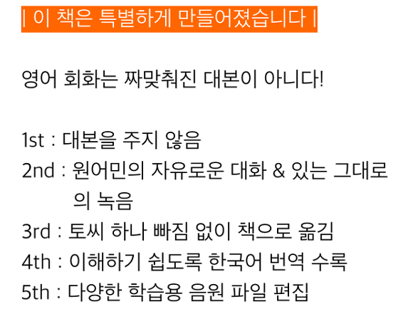 기존의 영어회화책들과는 완전히 방향을 달리하는 교재입니다.