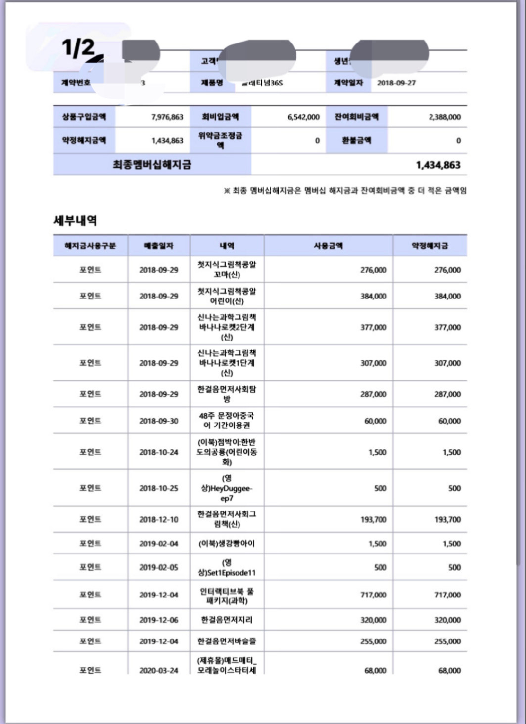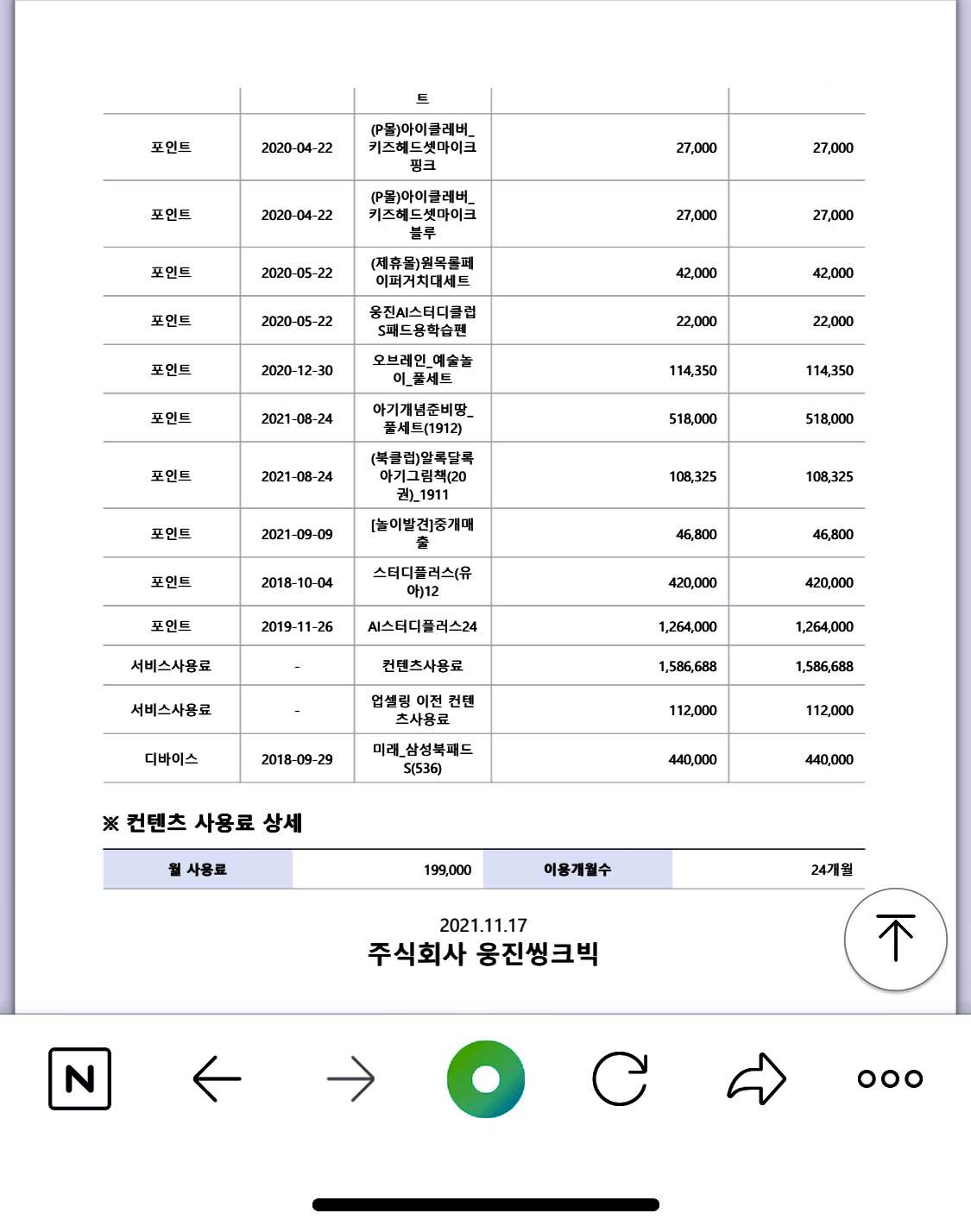 양심을 속여가며 일을하고있는 북규레이터 라고 하는 명칭도아깝네요 저는 둘째아이2년 첫아이 업셀링 5년 합이 7년 1000원가량 들었네요 전문대학교 학비를 쏟아부었네요 실패를경험삼아 두번다시는 학습지에 쏟지않기로 다짐하고 아이의 학습률보단 좋은선새님밑에 좋은제자가 나온다고 굳게믿으며 양심이 살아있는분을 찾는데에 초점을 두기시작했어요 웅진북클럽중에 좋은분도 분명 있으리라 생각하고 저같은 동물보다못한 국장들만나지않길 바랄뿐이죠 위약금을 살펴보니 2년째 충전도안되는 방지가까운 패드기기값 위약금이 너무 황당스럽네요 어떻게 해야옳은 선택일까요? 제자신에게 화가나네요 ㅠ