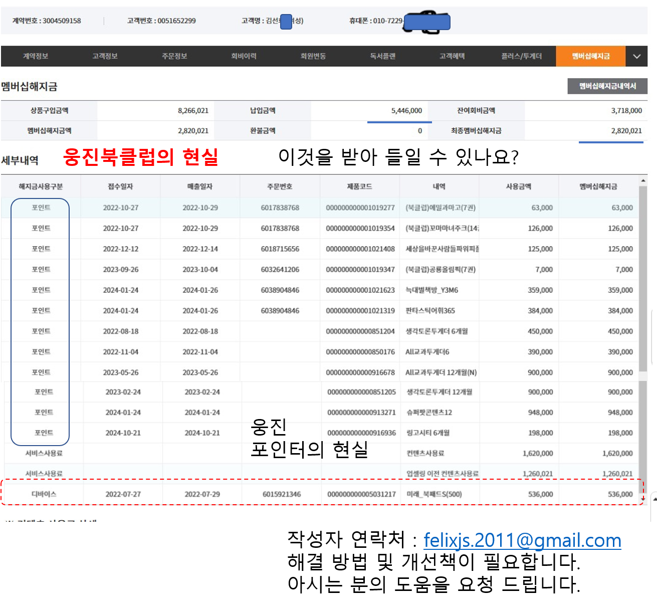 올프리미엄38(월 169,000원 사용료)을 2년 반 이상을 이용하다가 자녀가 힘들다고 하여