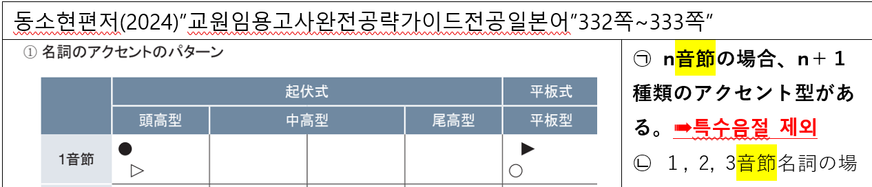 (악센트 형(型)의 숫자는 세는 경우, 음절이 아닌 박으로 센다고 정의하도록 안내..기타 등등)
