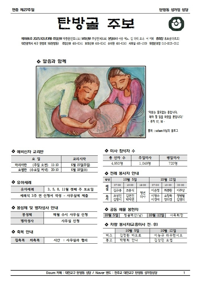 제1686호 연중 제27주일(2025.10.5) 작성자Christina|작성시간25.10.04|조회수89 목록 댓글 0 글자크기 작게가 글자크기 크게가 다음검색 현재 게시글 추가 기능 열기 북마크 공유하기 신고 센터로 신고 댓글 댓글 0 댓글쓰기 답글쓰기 댓글 리스트