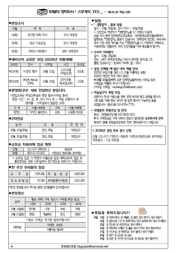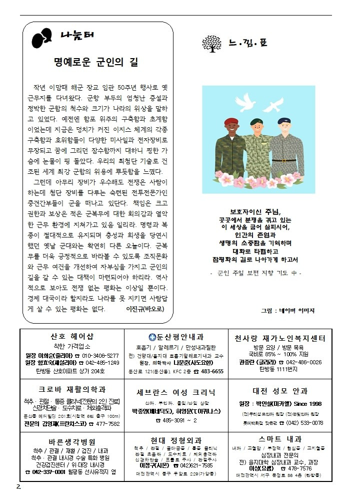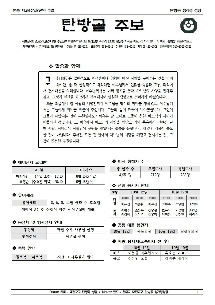 제1687호 연중 제28주일/군인 주일(2025.10.12) 작성자Christina|작성시간25.10.11|조회수49 목록 댓글 0 글자크기 작게가 글자크기 크게가 다음검색 현재 게시글 추가 기능 열기 북마크 공유하기 신고 센터로 신고 댓글 댓글 0 댓글쓰기 답글쓰기 댓글 리스트