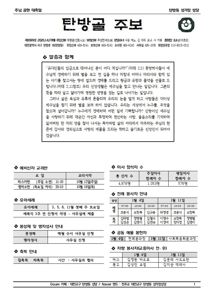 제1699호 주님 공현 대축일(2026.1.4) 작성자Christina|작성시간26.01.03|조회수161 목록 댓글 0 글자크기 작게가 글자크기 크게가 다음검색 현재 게시글 추가 기능 열기 북마크 공유하기 신고 센터로 신고 댓글 댓글 0 댓글쓰기 답글쓰기 댓글 리스트