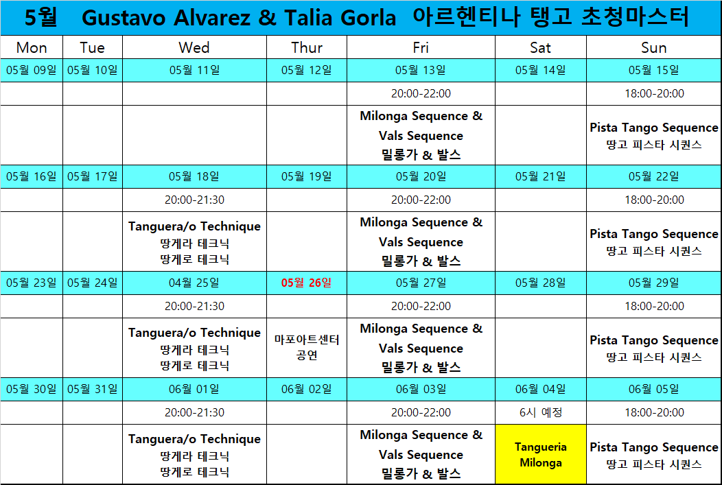 5월 구스타보&탈리아 단체 수업( 테크닉/밀롱가/발스/땅고시퀀스-22시간 풀팩 22만원) // 스테이지안무 개인지도 8회완성