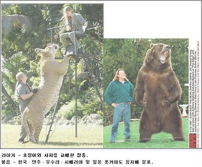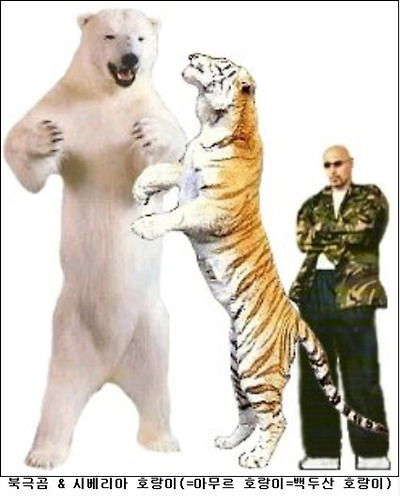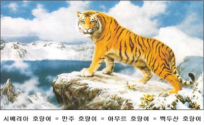 시베리아호랑이 [Siberian tiger] 시베리아호랑이(Panthera tigris altaica)는 호랑이의 아종으로 아무르호랑이, 한국호랑이, 백두산호랑이 등으로도 불린다. 몸길이 수컷 2.7∼3.3m, 암컷 2.4∼2.75m, 몸무게 수컷 180∼360kg, 암컷 100∼167kg이다. 같은 줄무늬를 가진 호랑이는 없으며 한 호랑이 안에서도 왼쪽과 오른쪽에 있는 줄무늬가 각각 다르다. 털빛깔은 황갈색이고 여름에는 다소 짙어지나 대체로 남방계 아종보다 엷으며, 몸 아래쪽의 흰 부분이 보다 넓다. 여름털은 짧으며 겨울털은 길고 빽빽하다. 1900년 무렵에는 한반도를 비롯해서 만주와 몽골 북부, 러시아 남부에 걸쳐 분포했었다. 남한에서는 일제 강점기에 이루어진 무차별 포획으로 1920년대 이후 생식이 확인되지 않고 있으며, 현재는 러시아 극동 남부의 하바롭스크 크라이와 프리모르스키 크라이에만 남아있고, 만주와 북한에 극소수가 남아있다. 1930년대에는 야생의 개체수가 50마리 이하까지 감소했었으나 그후 수가 늘어 2005년에는 431마리에서 529마리까지로 예상되고 있다. 러시아 극동지방도 시베리아에 포함되는 것으로 간주했을 당시에 시베리아 호랑이라는 이름이 붙었던 것으로 여겨지나,[출처 필요] 오늘날과 같이 극동지방을 시베리아에서 제외시키는 것으로 보면, 시베리아 호랑이는 그 이름과 달리 시베리아에 살았던 적이 없으며, 현재도 살고 있지 않다. 등은 짙은 적황색, 불규칙한 검은색 줄무늬가 많다. 배에는 갈색 반점이 매우 두드러진다. 가을털은 여름털에 비해 짧고 옅으며, 수염은 순백색이다. 얼굴에 있는 임금 왕(王)자가 특징이다.